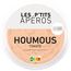 Ingrédients : Pois chiches 29.5%, eau, tomate séchée au soleil 20% (tomate séchée au soleil, sel), huile de colza, pâte de sésame 12%, sel, ail en poudre, acidifiant : acide citrique ; oignon, épices, conservateur : sorbate de potassium.