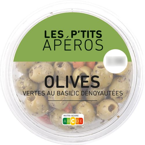 Olives vertes au basilic dénoyautées
