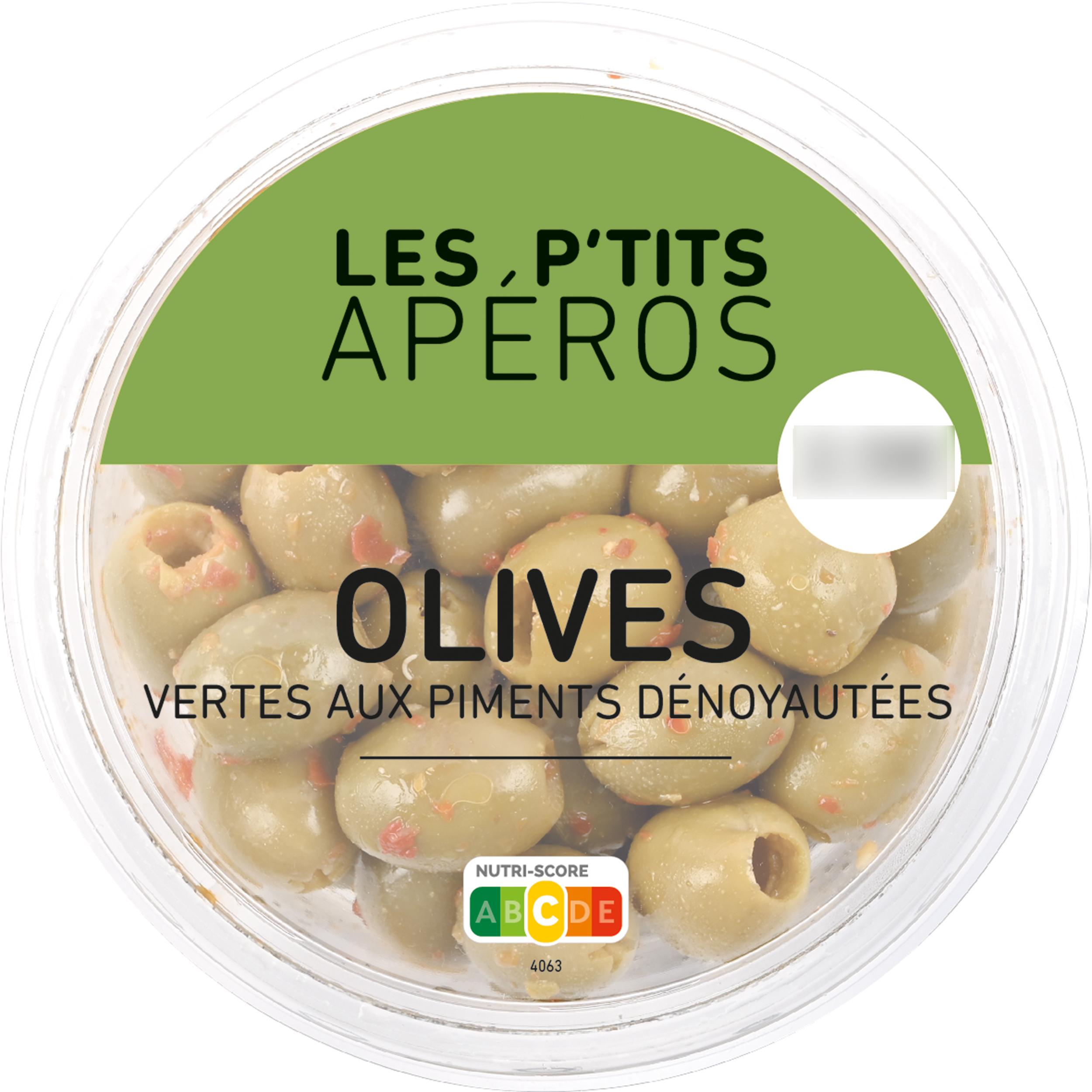 Olives vertes aux piments dénoyautées