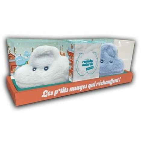 Les petites bouillottes de poche trop mignonnes pour se réchauffer le coeur et le corps. Ce coffret contient : 2 bouillottes forme nuage blanche et bleu-grise avec décor visage (format 90x60x50mm) Matière peluche poils mi-longs / Garnissage en perles céramiques 1 livre de remèdes naturels contre le froid Bouillottes à réchauffer au micro-ondes pour 1h de chaleur !