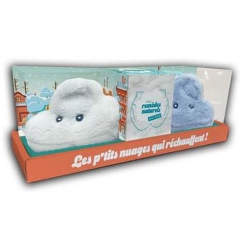 Les petites bouillottes de poche trop mignonnes pour se réchauffer le coeur et le corps. Ce coffret contient : 2 bouillottes forme nuage blanche et bleu-grise avec décor visage (format 90x60x50mm) Matière peluche poils mi-longs / Garnissage en perles céramiques 1 livre de remèdes naturels contre le