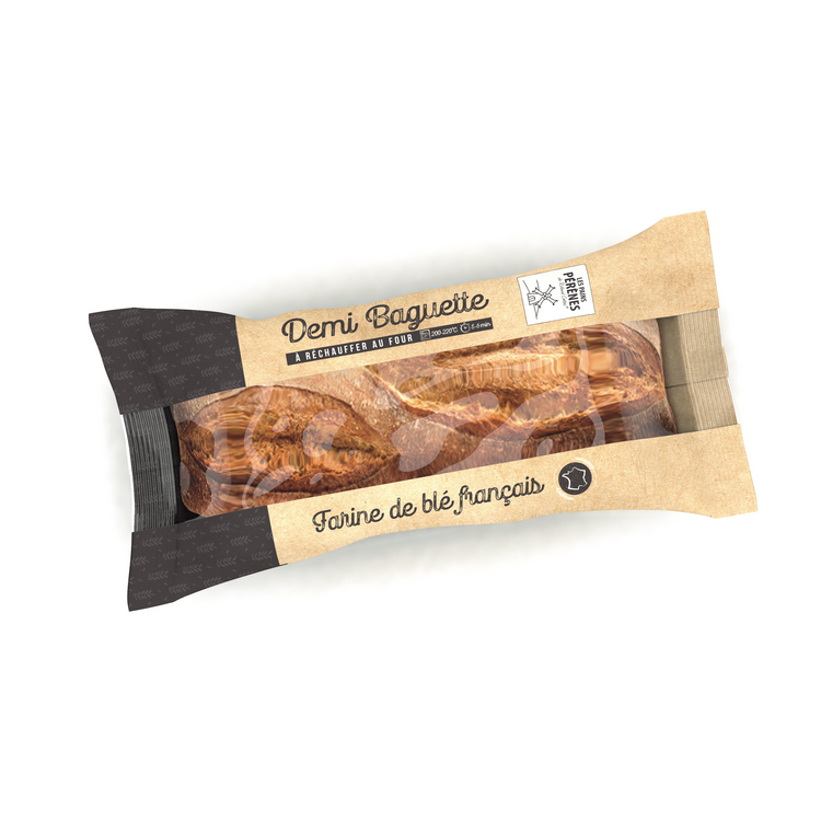 Baguettes et demi-baguettes prêtes en 6 et non 8 minutes à 200 degrés dans un four à chaleur tournante. Petit plus, en l’humidifiant un peu avant cuisson ; elle sera encore bonne le lendemain.