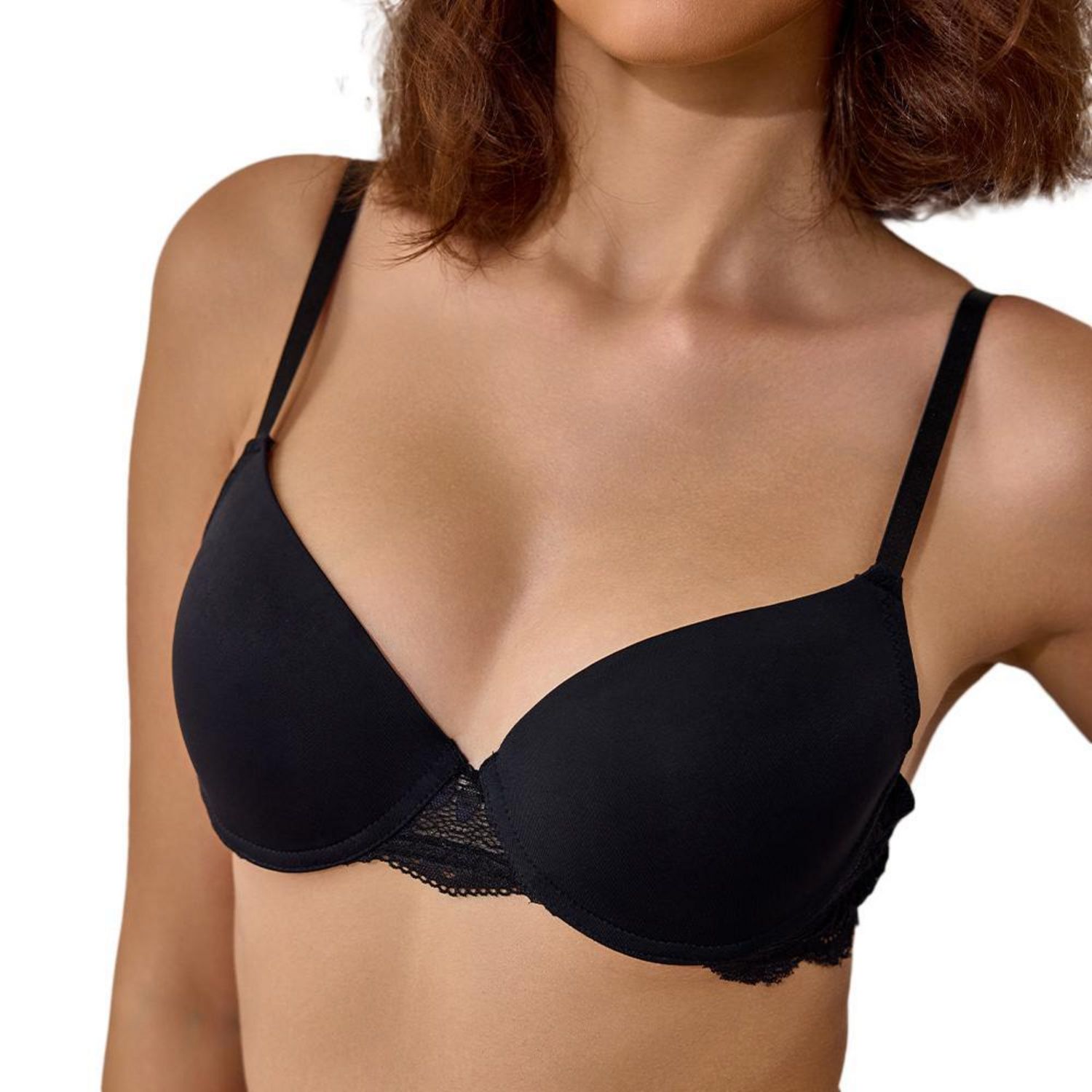Optez pour ce soutien-gorgeComposition : 90%polyamide, 10%elasthaneColoris : Noir Détails dentelleBretelles réglablesBalconnet de maintient Coque en mouse Agrafe ajustable