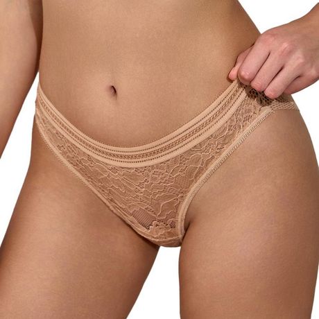 Optez pour ce tanga Les Petites BombesComposition : 90% polyamide, 10% élasthanneColoris : Nude Entièrement en dentelleTaille élastique Coupe tanga