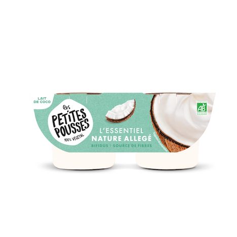 Lait de coco allégé*(1) 91% (eau, noix de coco*(1)), fécule de manioc*, fibre de chicorée*, épaississant : agar agar*, fibre d'avoine (sans gluten)*, ferments sélectionnés.