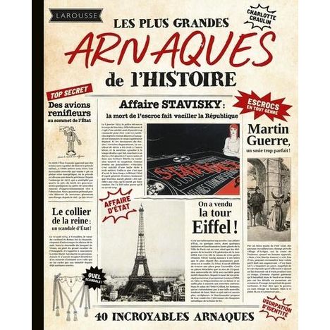 Votre colis ne rentre pas dans la boîte aux lettres ? Votre compte bancaire a été temporairement suspendu ? On vous informe que votre facture EDF est impayée ? PAS DE DOUTE : VOUS AVEZ CROISE LA ROUTE D'UNE DE CES ESCROQUERIES MODERNES, SANS ECLAT, SANS IMAGINATION. RIEN A VOIR AVEC CELLES D'HIER - AUDACIEUSES, SPECTACULAIRES ET PLEINES DE PANACHE ! Voici quarante des plus grandes arnaques de l'Histoire, et autant de façons de manipuler la réalité. Des imposteurs qui endossent l'identité d'un autre - Jeanne d'Arc, Anastasia, Louis XVII - ou s'en inventent une de toutes pièces, de riche héritière à lama tibétain. Des magiciens de la finance - Charles Ponzi et sa célèbre pyramide, Bernard Madoff et ses 65 milliards de dollars de mensonge... Des faussaires de génie : peintre de talent, faiseur de diamants, imitateur de grands crus... Des créatifs sans limite qui vont jusqu'à vendre la tour Eiffel, coloniser un royaume imaginaire, peindre de faux Vermeer, ou écrire les journaux intimes d'Hitler... Et vous croiserez aussi ceux sans qui rien de tout cela ne fonctionnerait : leurs victimes. Qui sont ces maîtres du bluff ? Pourquoi cède-t-on à leurs promesses ? Que disent-ils de nous, de nos failles, de notre époque ? Charlotte CHAULIN (@cpasdeshistoires) est autrice et journaliste spécialisée en histoire. Elle collabore avec plusieurs médias (GEOhistoire, Histoire junior...) et écrit des récits de Stéphane Bern pour l'émission Historiquement Vôtre diffusée sur Europe1.