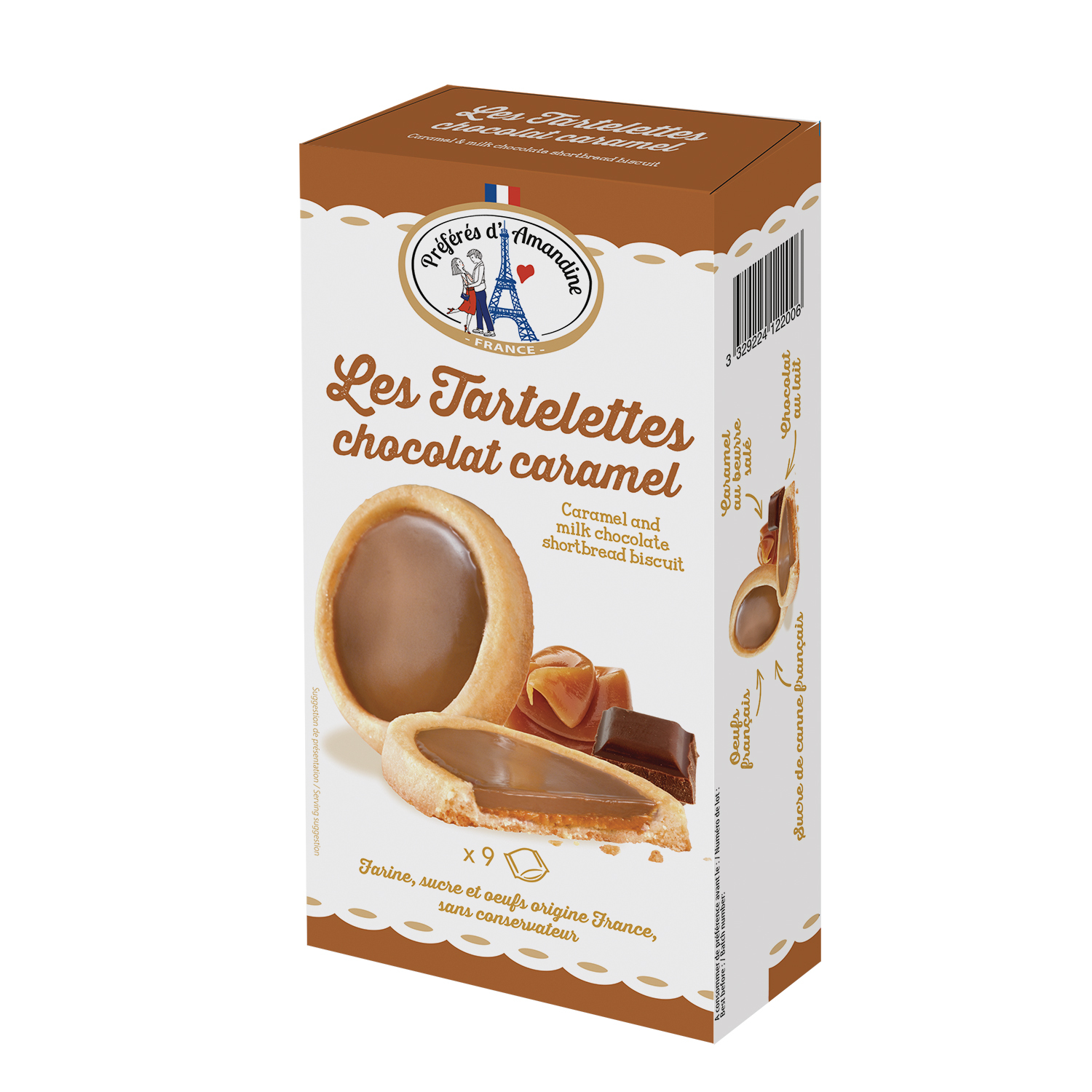 Tartelettes biscuits sablés nappés caramel et chocolat au lait sachets fraîcheur