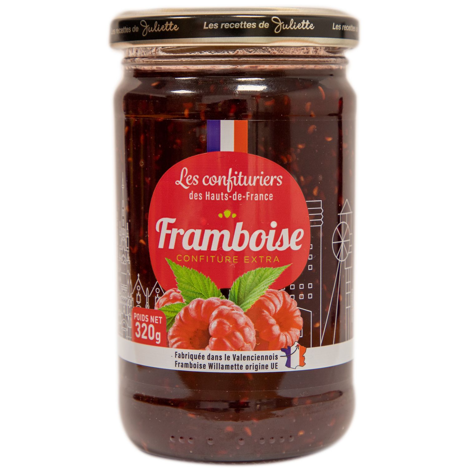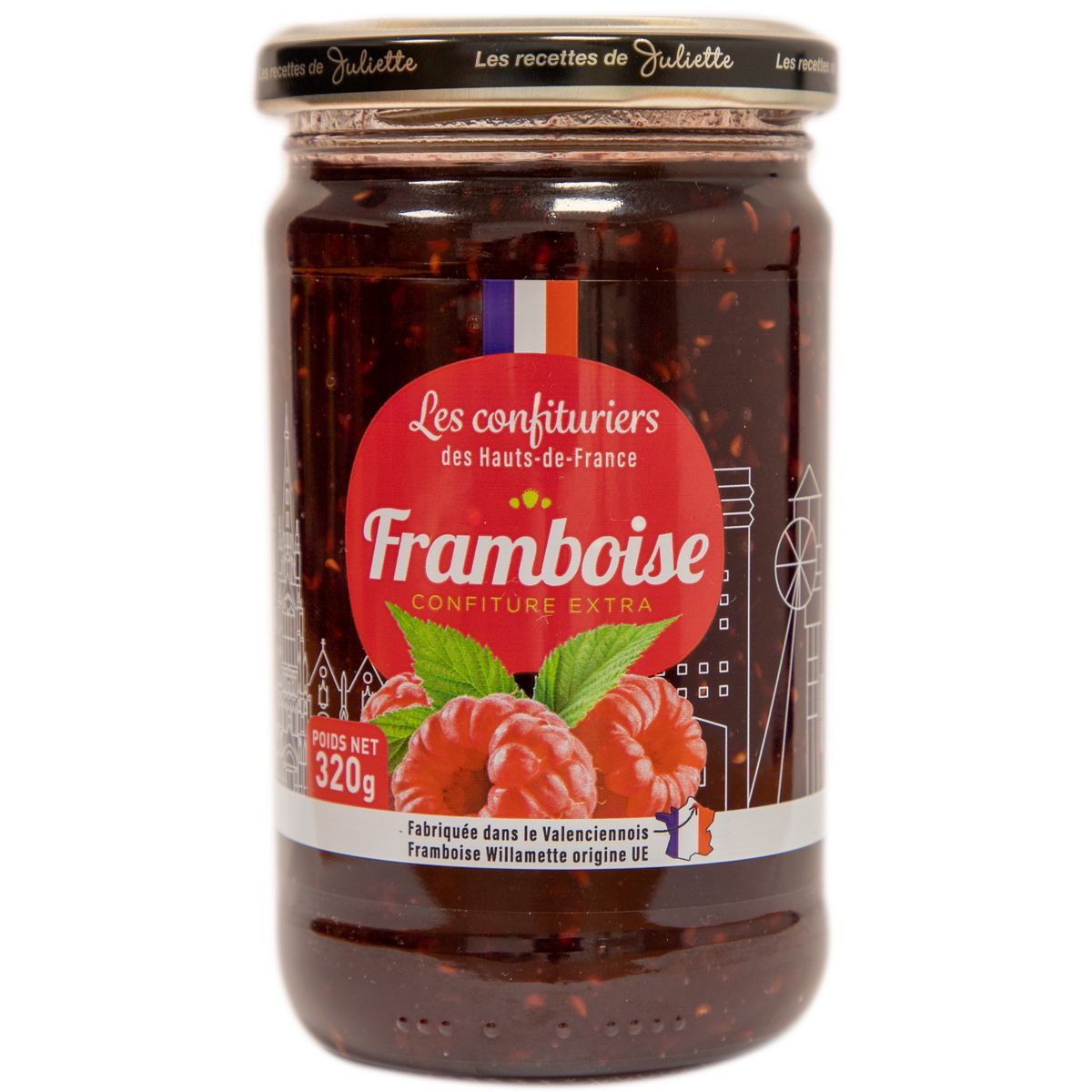 Ingrédients : Framboise (origine UE/non UE), sucre (origine France), jus de citron concentré, gélifiant : pectines.