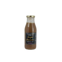Ingrédients : Eau, POISSONS entiers sauvages pèches en Méditerranée (25%), concentré de tomates, vin blanc, carottes, oignons, amidon modifié de maïs, sel, poireaux, huile de colza , épaississant : gomme de Xanthane, pulpe d'AIL, persil, cognac, pastis, poivre, laurier, fenouil, girofle, thym, safran. contient des SULFITES