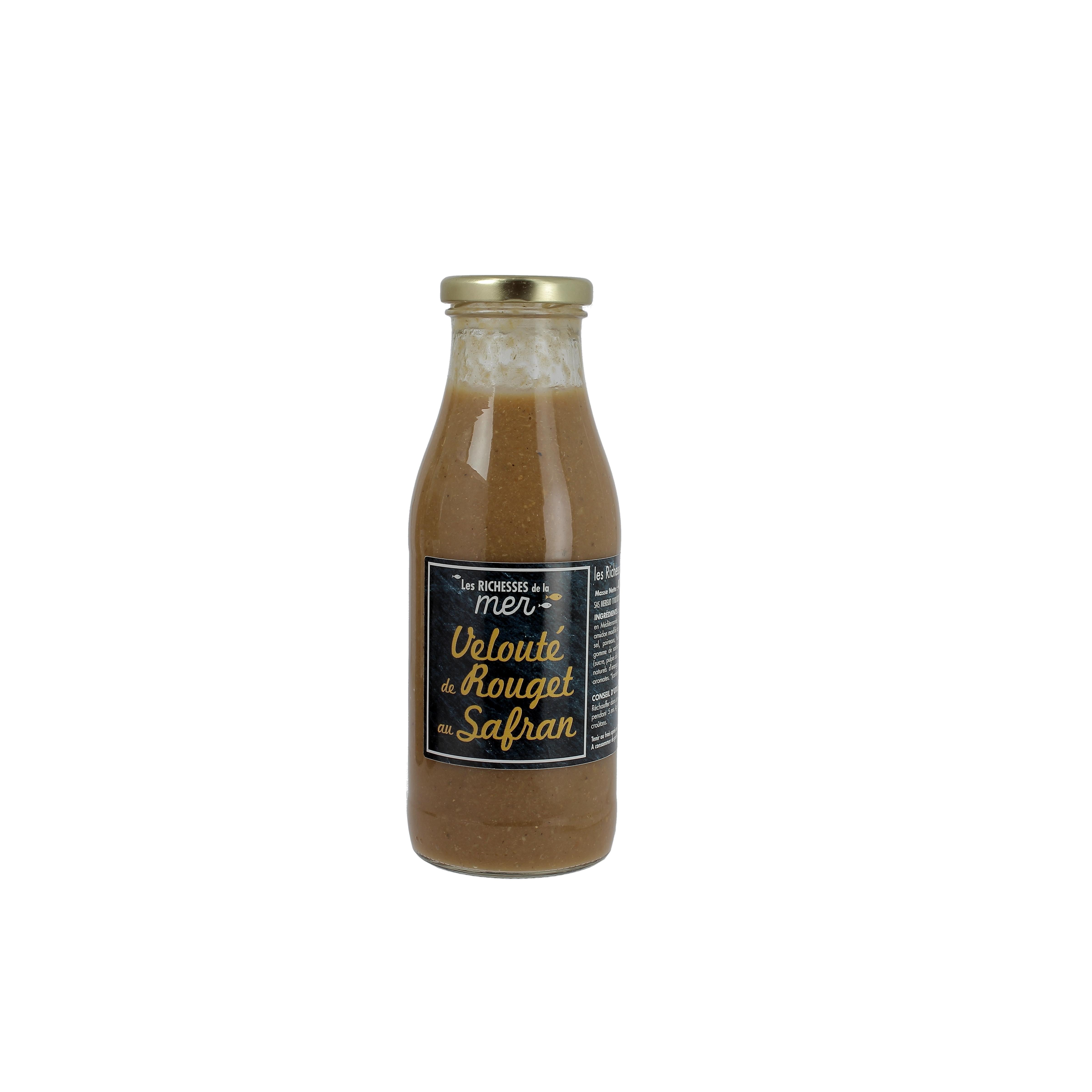 Ingrédients : Eau, rougets grondins entiers pêchés en Méditerranée (21%), concentré de tomates, vin blanc, amidon modifié de maïs, carottes, oignons, crème liquide, sel, poireaux, huile de colza, épaississant : gomme de Xanthane, jus d'orange à base de concentré (sucre, pulpe de citron, acidifiant : acide citrique, arômes naturels d'orange), pulpe d'ail, pastis, poivre, safran, aromates