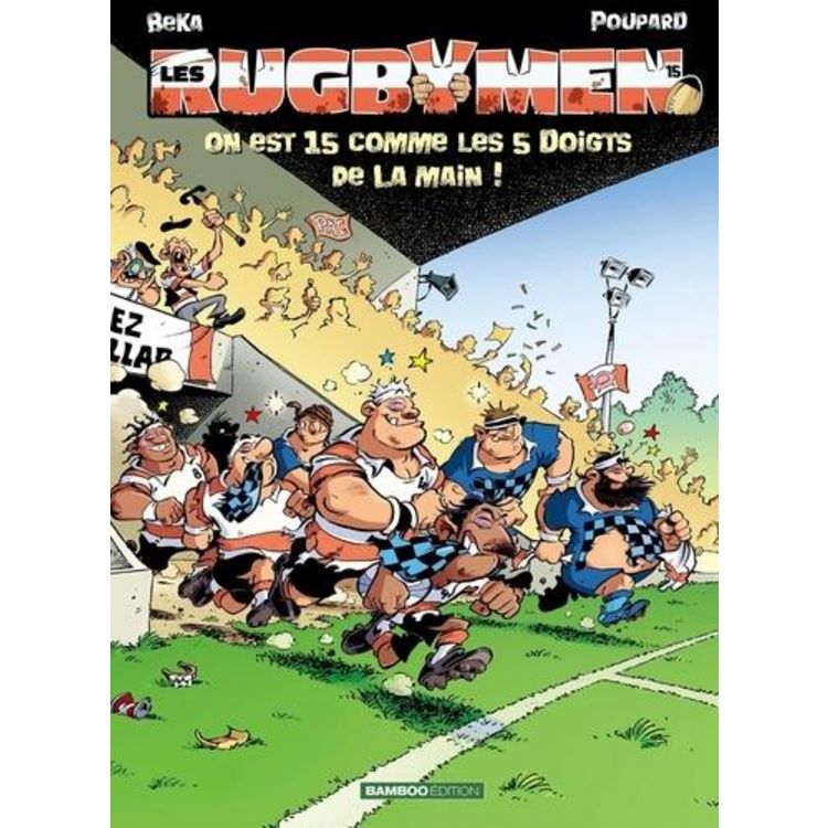 En savoir +On est 15 comme les 5 doigts de la main . L'équipe des Rugbymen revient au grand complet ! Pour marquer cette étape importante, BeKa et Poupard retournent aux sources de la série : un album 100% gags alternant des soirées châtaigne, des matchs à rebondissements, des apéros mémorables, des entraînements physiques, des sorties en boîte... et même l'intervention d'une strip-teaseuse ! Du rugby à XV, du vrai !