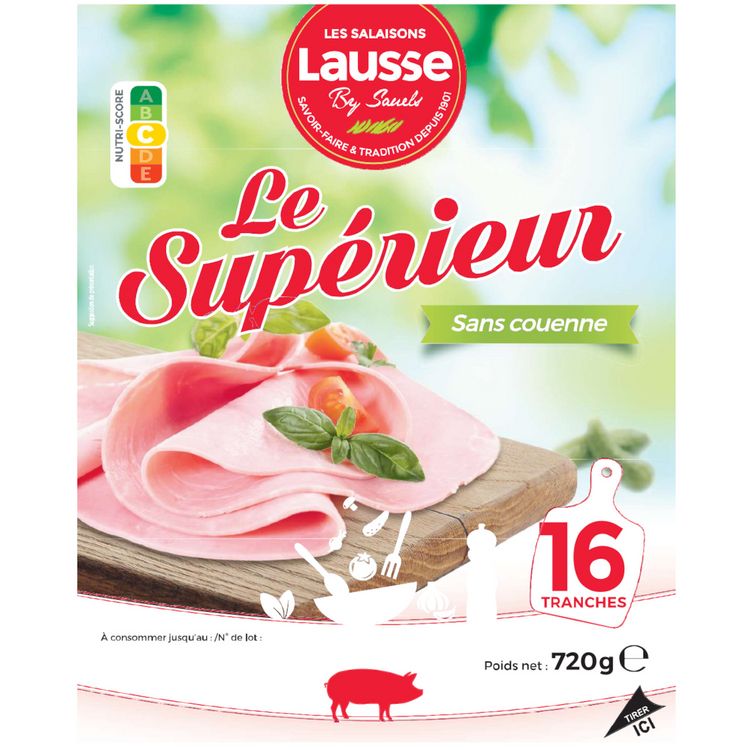 Jambon supérieur cuit tranché, prêt à l'emploi