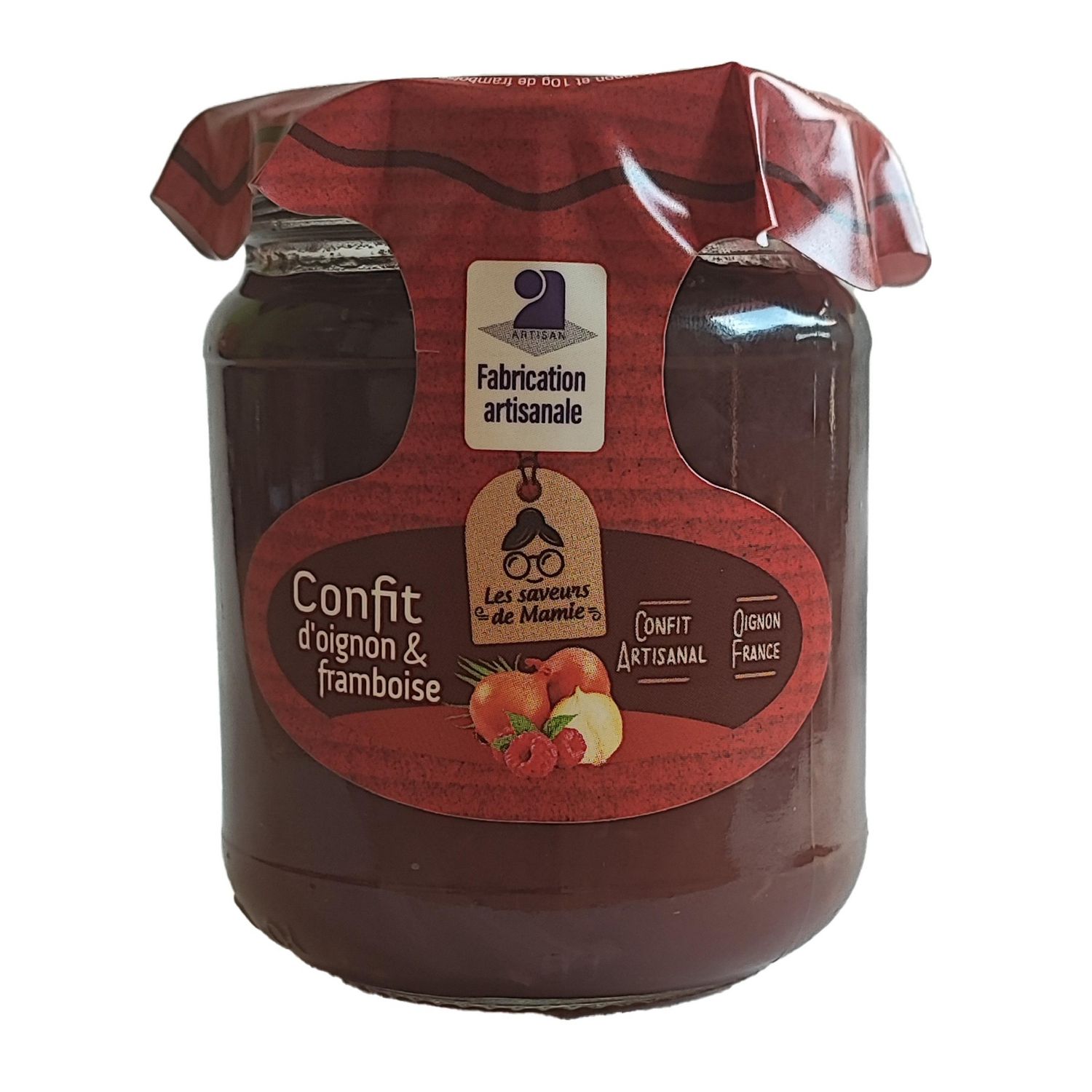Préparé avec 55g d'oignon et 10g de framboise pour 100g de produit fini
