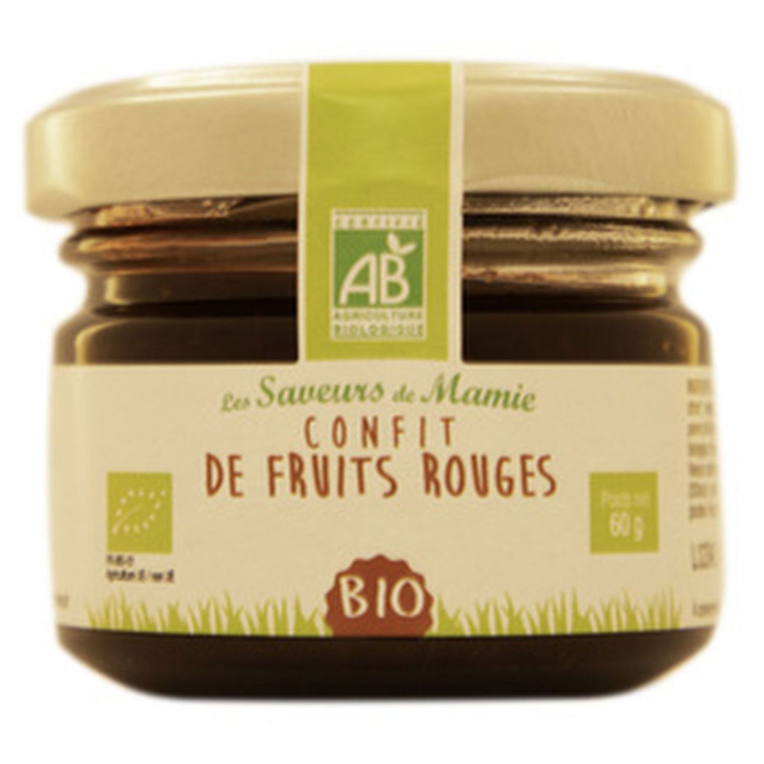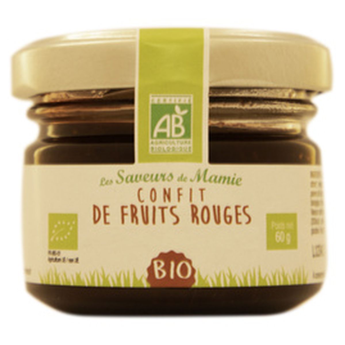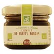 cerise* 44%, sucre de canne*, fraises* 14%, jus de citron*, vinaigre d’alcool*, gélifiant : pectines, sel de Guérande, épices*, poivre*. *issus de l’agriculture biologique.