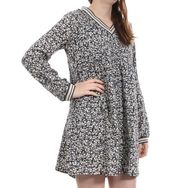 Robe femme de la marque Les Tropéziennes Manches longues Col V Tissu fluide Finition doré sur le col et les manches Coloris : Bleu Imprimé fleurs Composition : 100% viscose