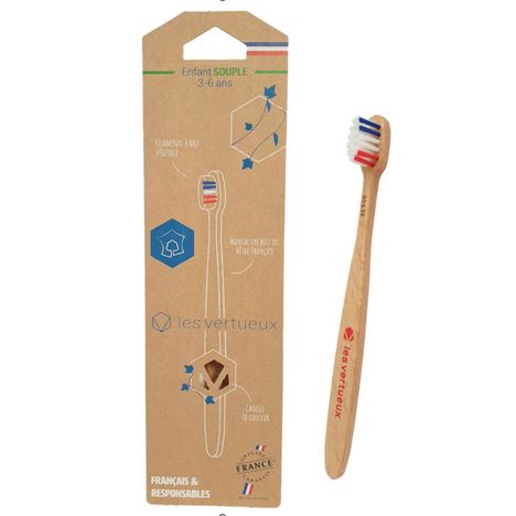 Brosse à dents souple en bois de hêtre rouge enfants 2-6 ans