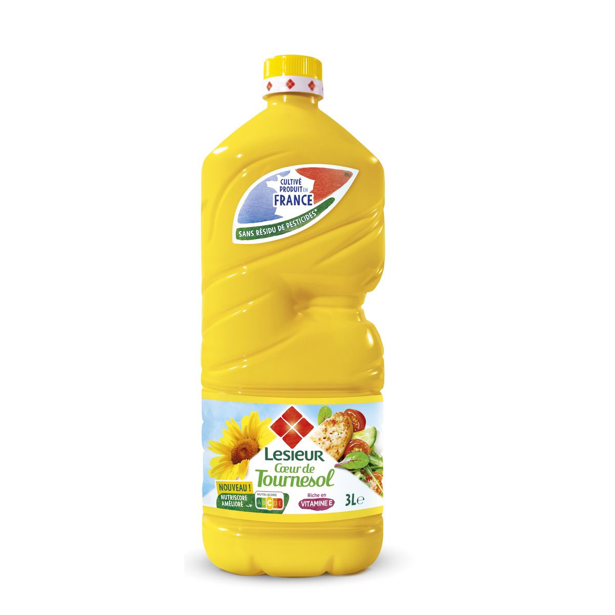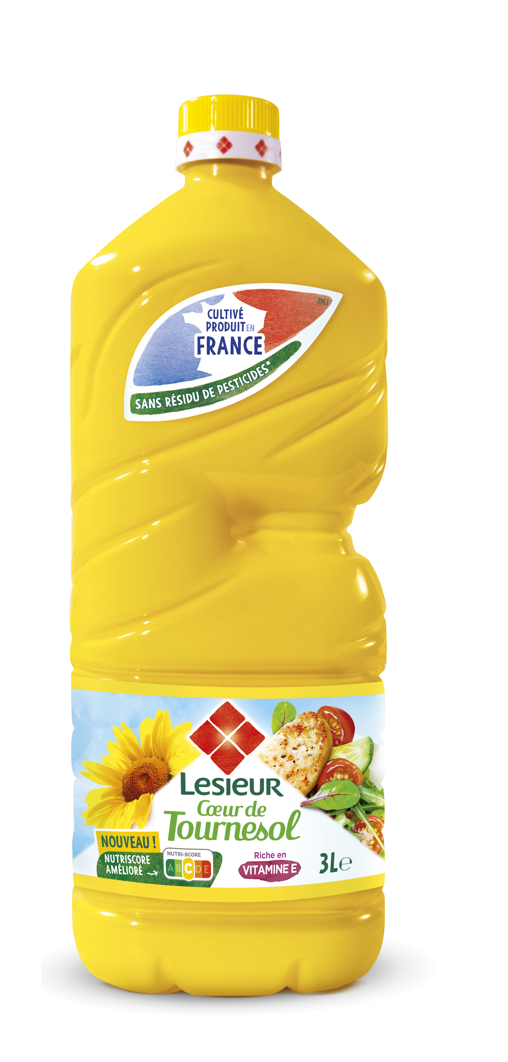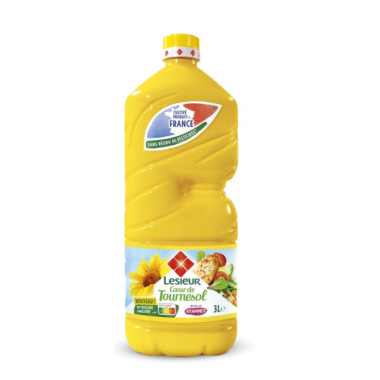 "Lesieur vous propose Cœur de Tournesol est une huile issues de graines exclusivement cultivées et produites en France et mise en bouteille dans nos usines françaises. Lesieur s'engage à vous proposer un huile sans résidu de pesticides*, dans une bouteille 100% recyclée recyclable. Cœur de tournesol convient pour une utilisation quotidienne en assaisonement, cuisson et friture**. *Teneurs inférieurs aux limites de quantification de 0,01mg/kg sur une liste de 200 pesticides analysés sur les huiles par un laboratoire indépendant, accrédité COFRAC. ** Température maximale conseillée: 175°"