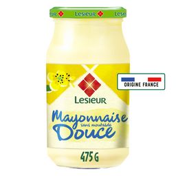 "La mayonnaise Douce Lesieur, sans moutarde, est préparée avec de l'huile de Colza de nos régions françaises, source naturelle d'Oméga 3, et des ingrédients d'origine naturelle. Elle est produite en Hauts-de-France, à Grande-Synthe (59). Sa texture onctueuse et gourmande donne une sensation généreuse en bouche. Elle accompagne la plupart de vos plats, crudités, viandes, frites, légumes à croquer..."