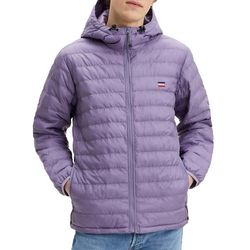 Doudoune pour homme de la marque Levis ! Couleur : Mauve Coupe altique Fermeture zippée Capuche avec élastiques de serrage Poches latérales zippées Broderie Levis sur la poitrine Matière imperméable Doudoune pliable 100% polyester