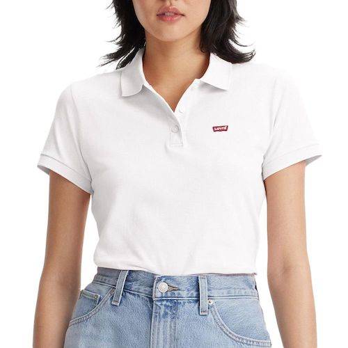 Polo femme de la marque Levi's !Manches courtesCol polo 3 boutonsColoris : BlancPatch brodéComposition : 95% coton , 5% élasthanne