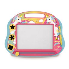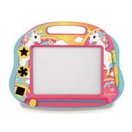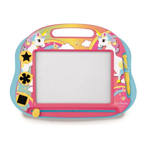 * Une ardoise magique pour laisser libre cours à sa créativité!* Ardoise magnétique avec dessins multicolores.* Possibilité d'effacer son dessin en un clin d'œil : il suffit de faire glisser le bouton situé en bas de l'ardoise !* Pratique : le stylet reste accroché à l'ardoise grâce à une ficelle.*