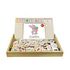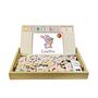 *Set de 73 lettres en bois inclus, pour apprendre l'alphabet et reproduire les mots écrits sur les cartes fournies.