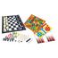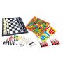 * Contenu du coffret : 1 plateau de jeu magnétique + 3 cartes de jeu double-face + 5 dés + 32 pièces d'échecs + 30 pions de dame + 34 pions de couleur