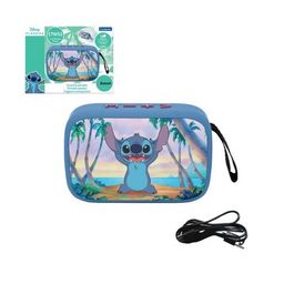 Cette enceinte Bluetooth portable Stitch séduit par son design compact (11,7 x 3,8 x 7,8 cm) et son revêtement en tissu élégant. Son boîtier en silicone doux et sa dragonne intégrée en font un compagnon idéal pour les déplacements des enfants, parfaitement adapté aux mains petites comme aux sacs à dos.