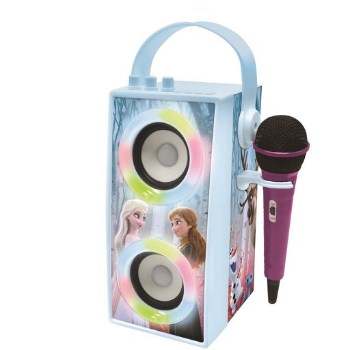 * Une enceinte karaoké portable puissante et avec des effets lumineux pour créer une ambiance de fête où que vous soyez en vacances ou chez vous.