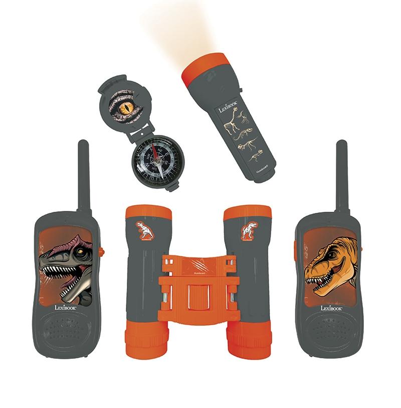 * Un set d'aventurier complet pour partir en exploration !* Des jumelles pour voir au loin.* Une boussole pour retrouver son chemin.* Une lampe-torche pour partir à l'aventure de jour comme de nuit ou pour envoyer des messages codés à tes amis !* Clip ceinture : attache ton talkie-walkie à ta ceintu