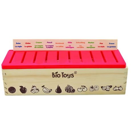 *Apprends du vocabulaire en français et en anglais avec cette boîte de tri en bois !