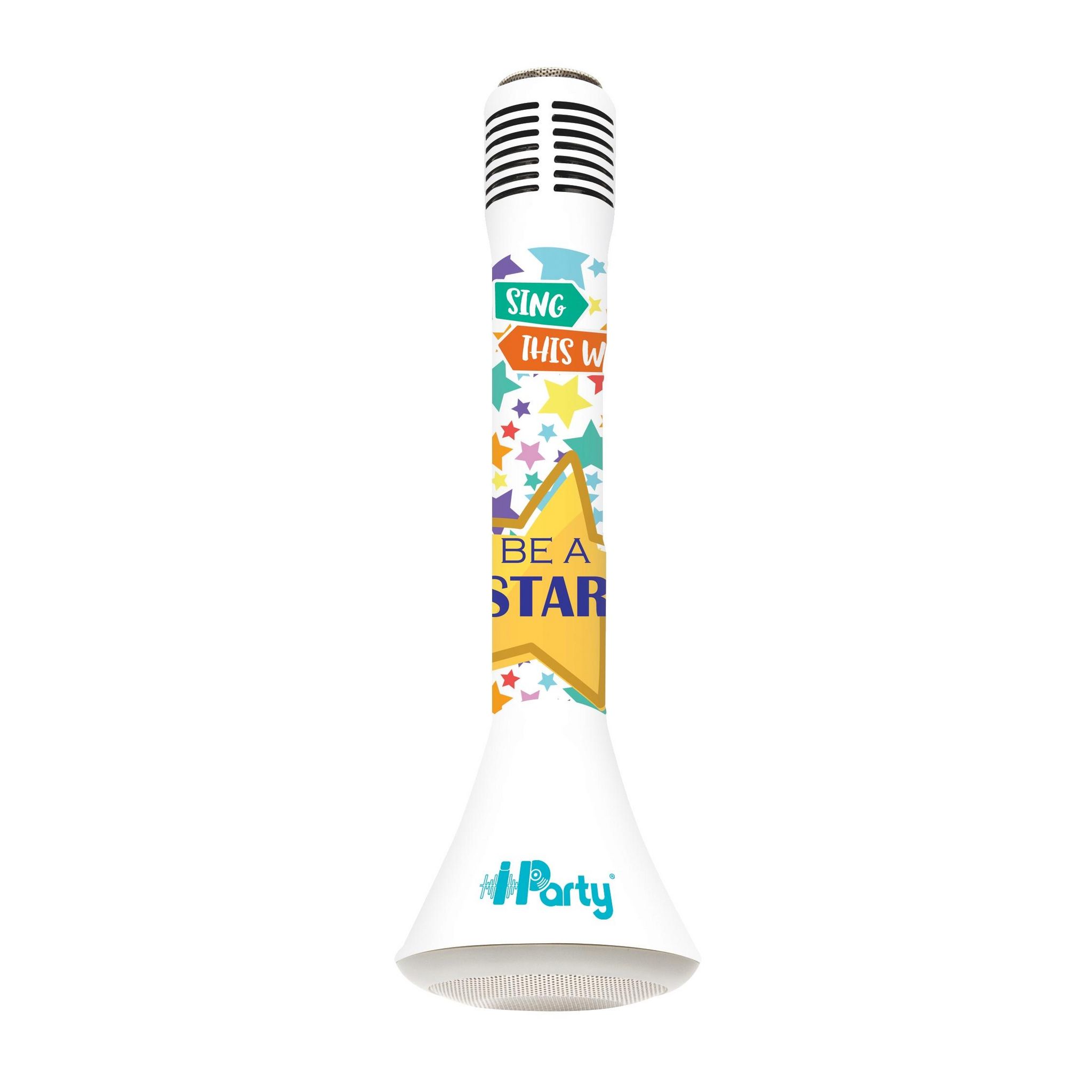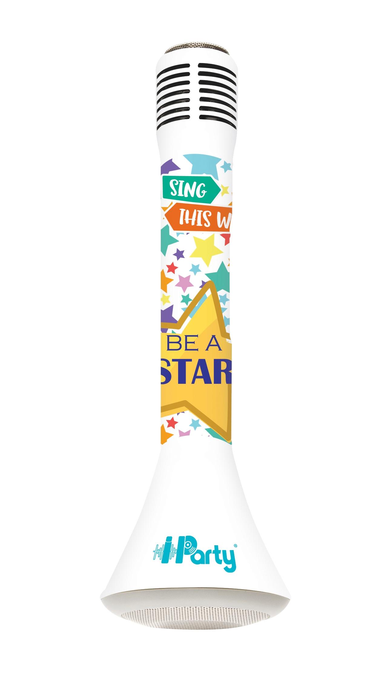 Le premier micro sans fil avec enceinte Bluetooth intégrée et effets lumineux pour chanter comme une star!Le Karaoké Micro Star iParty fonctionne sans fil avec tous les appareils équipés de la fonction Bluetooth (10 m).Contrôle du volume du micro et réglage de l'écho pour de jolis effets de voix.Tra
