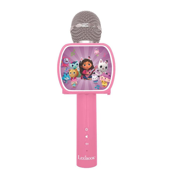 Microphone Gabby et la maison magique sans fil avec enceinte, une fonction changement de voix, un support téléphone rétractable et une option Bluetooth
