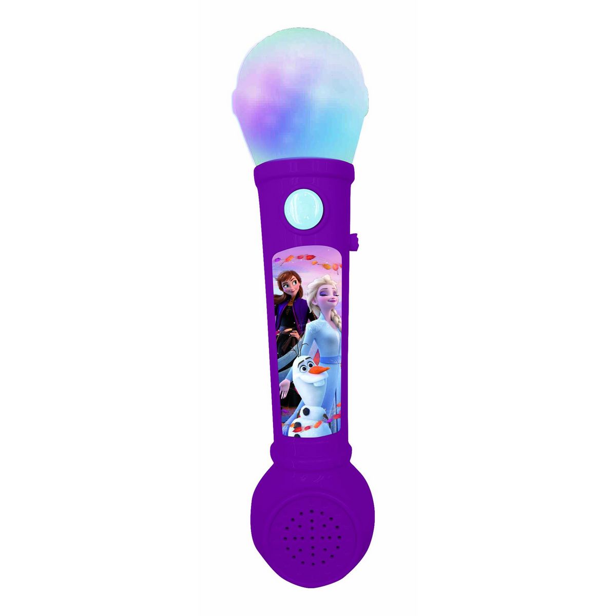 Un microphone lumineux parfait pour les chanteurs en herbe !* Effets lumineux : chante avec les lumières multicolores !* Sons d'applaudissement inclus pour t'encourager.* Des mélodies de démonstrations sont incluses, pour chanter et danser pendant des heures.* Haut-parleur intégré.* Alimentation : 2