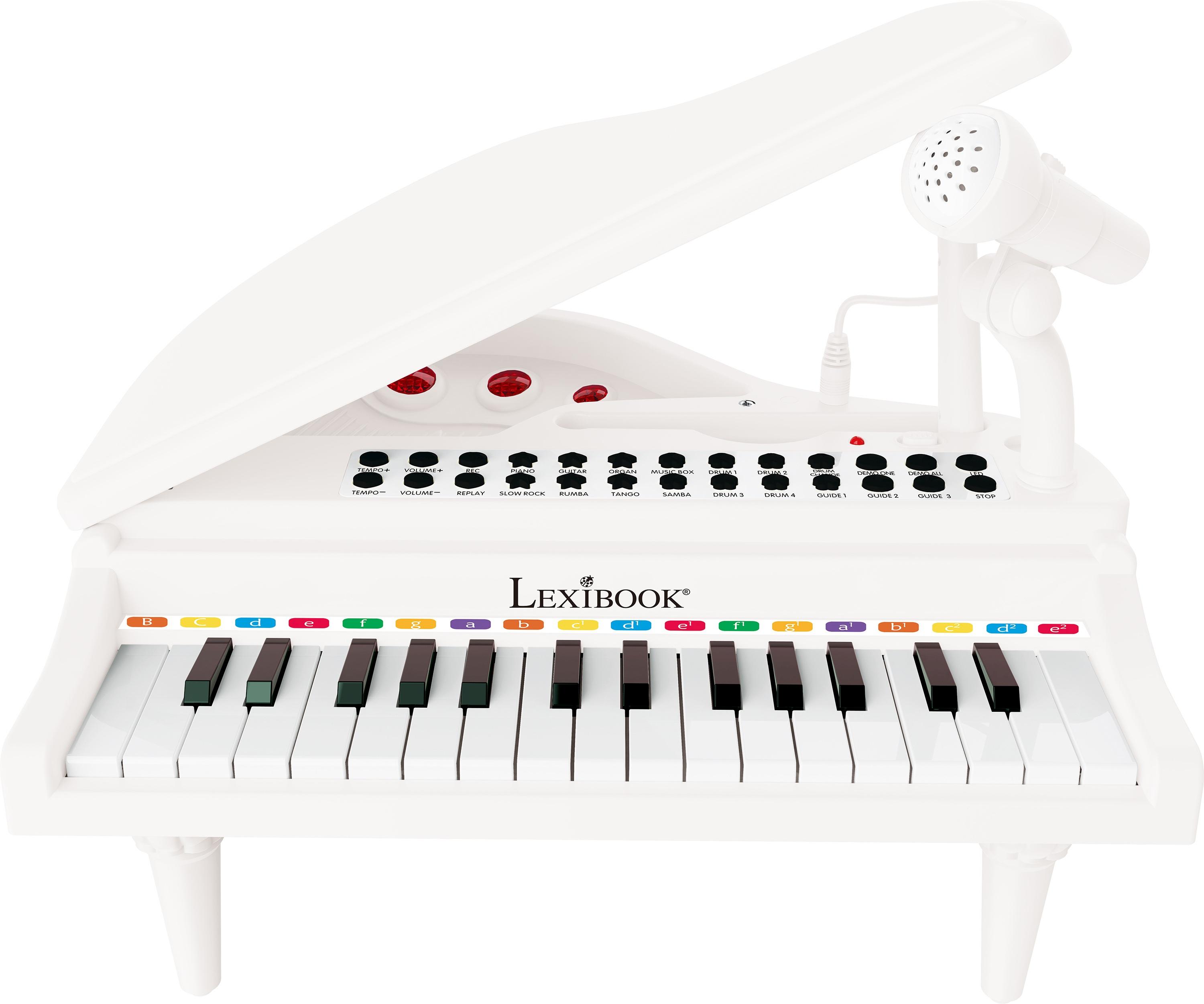* Un fantastique piano à pieds avec 31 touches lumineuses !* Mode apprentissage : La lumière rouge sur les touches guide l'enfant l'enfant vers la prochaine note à jouer et lui apprend à placer ses doigts sur le clavier.* Un piano complet avec de nombreuses fonctionnalités: 22 chansons de démonstrat