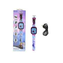 -Superbe design La Reine des Neiges avec bracelet réglable et écran tactile HD. -Appareil photo 720p, vous permettant de prendre des photos et des vidéos ! -Lecteur MP3 pour profiter de votre musique préférée ! -5 jeux intégrés, pour s'amuser à tout moment et en tout lieu ! -Carte de 8 Go incluse po