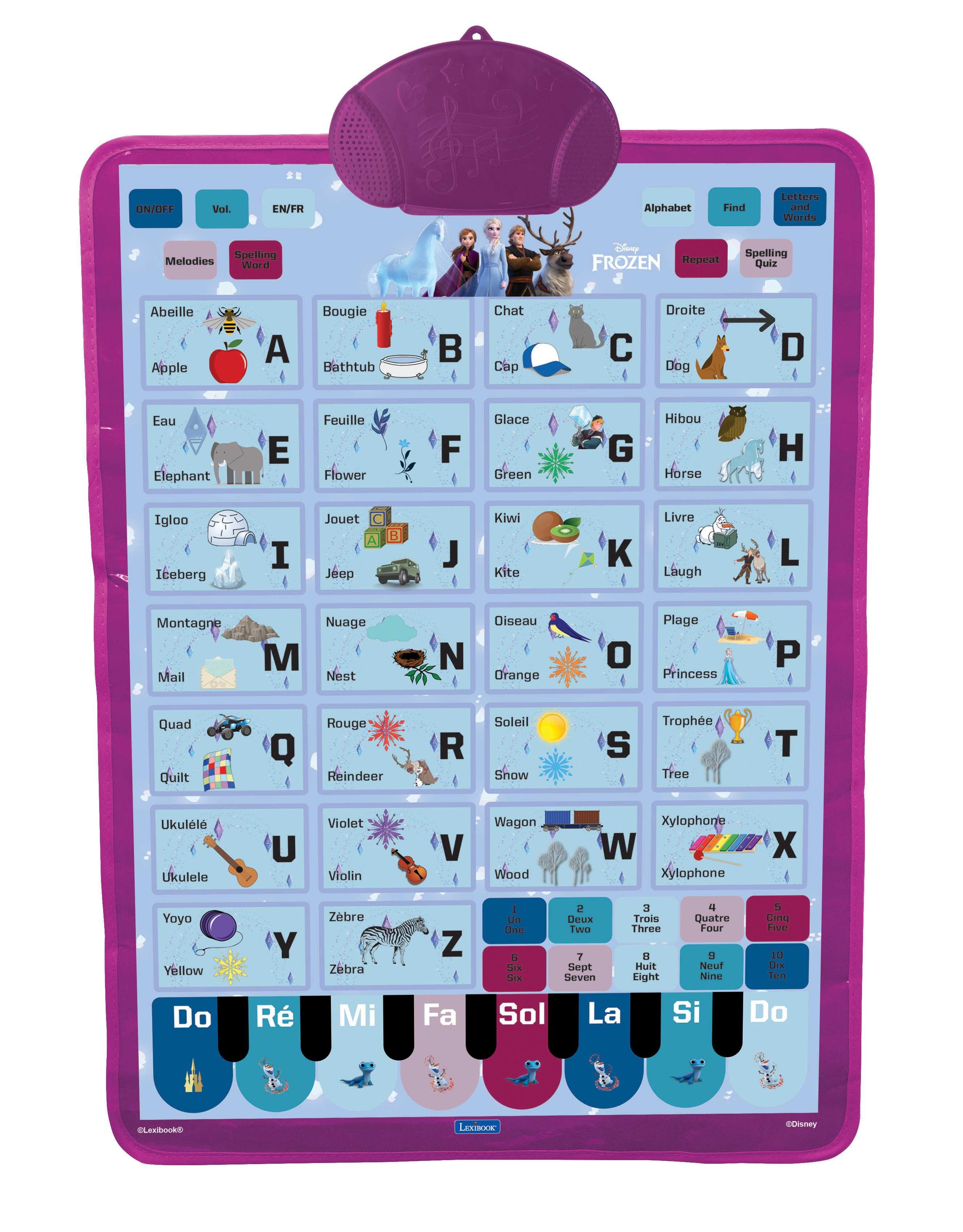 Poster abécédaire éducatif parlant bilingue en français et en anglais La Reine des Neiges