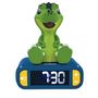 * Un magnifique design avec le dinosaure qui s'éclaire pendant quelques minutes en appuyant dessus !* Écran LCD avec rétro éclairage temporaire. * Bouton pour déclencher des effets sonores ! * Alarme avec 6 choix de sonneries * Appuyez sur le dessus du réveil pour éteindre l'alarme ou allumer la vei