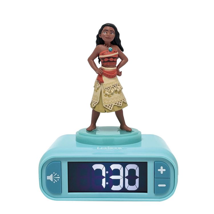 Magnifique Réveil - Veilleuse Vaiana avec effets sonores- Rythmez vos réveils au son des 6 sonneries de ce réveil, couplé d'une fonction veilleuse dont le design Vaiana enjolivera vos nuits.- Écran LCD avec rétro éclairage temporaire.- Bouton pour déclencher des e