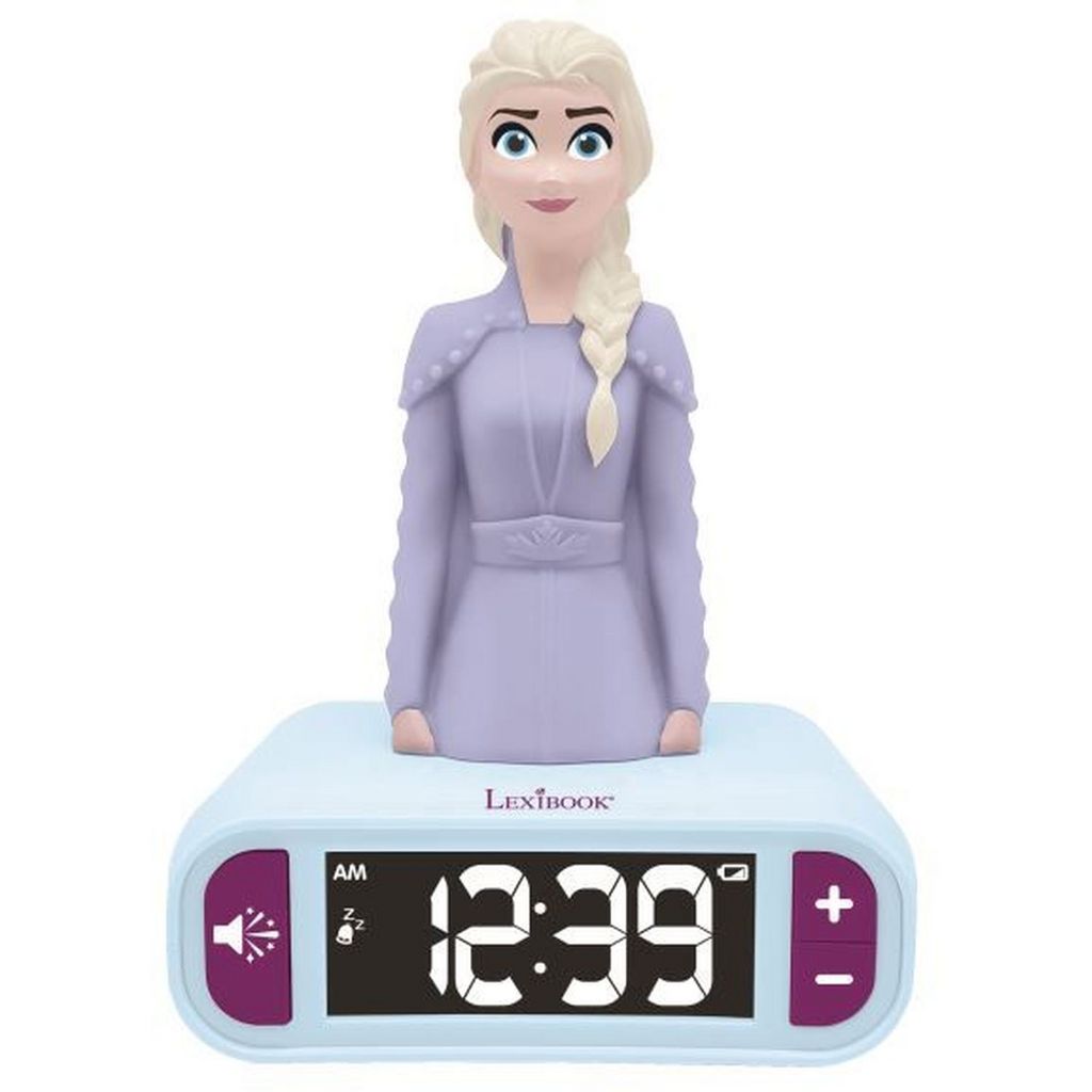 Endors toi avec la princesse Elsa, avec la veillleuse integrée appuies simplement sur Elsa pour la déclencher. Son écran LCD t'indiquera l'heure avec un retro éclairage temporaire. Pour des matins dignes de la Reine des Neiges, le réveil Elsa te fera également découvrir différentes sonneries de la Reine des Neiges, comme le son des oiseaux, les vagues et plein d'autres sons. La fonction Snooze te permettra de ne pas replonger dans tes rêves, pour éteindre le réveil appuie simple sur Elsa.