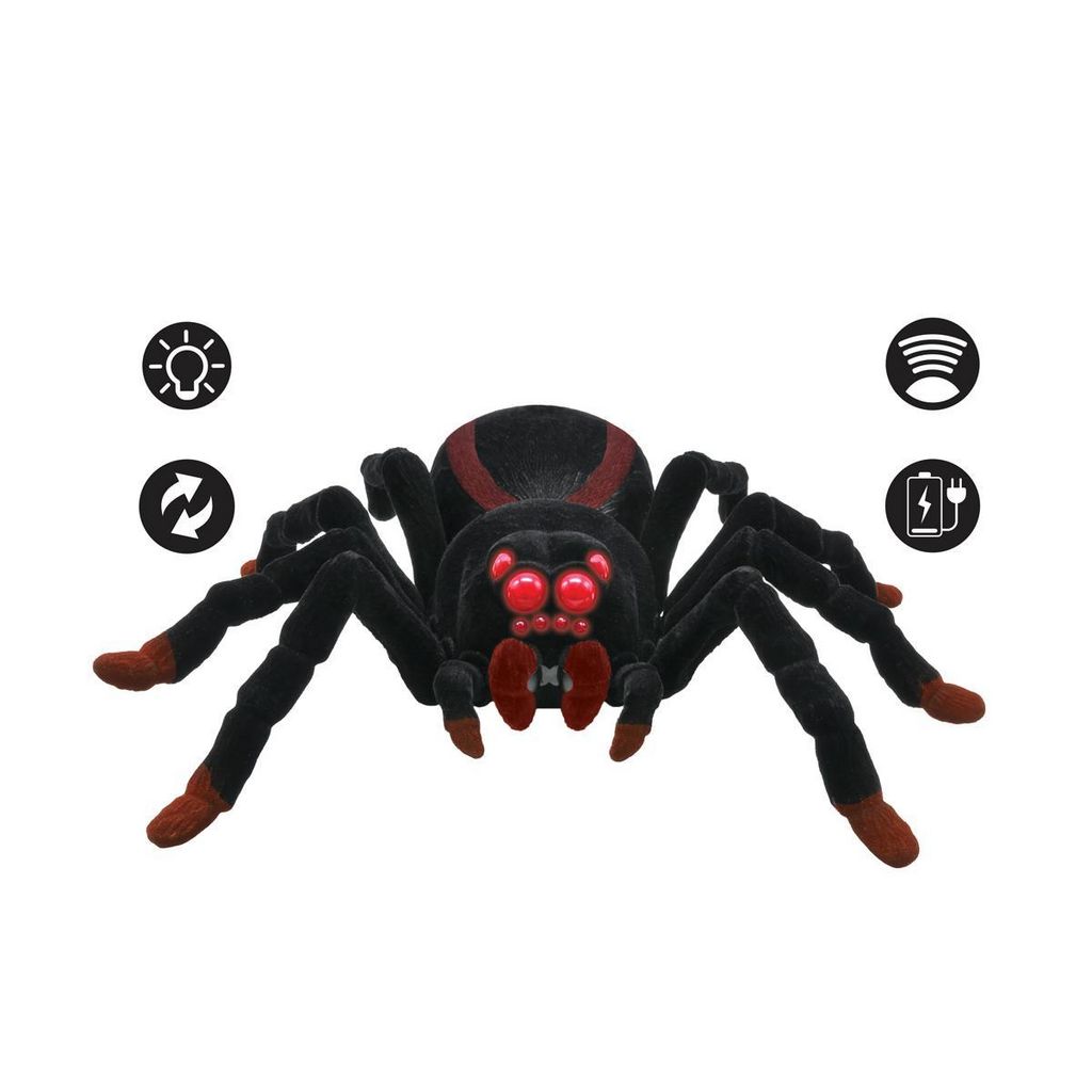 Équipée d'une télécommande pour des interactions réalistes. - Contrôlez l'araignée dans 4 directions : avant, arrière, gauche et droite.- Batterie rechargeable !- Mode démonstration - Effets lumineux dans les yeux !