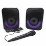 * Ambiancez-vous grâce aux deux enceintes et chantez sur vos musiques préférées grâce à son micro inclus !*Effets lumineux multicolores*Fonctionne sans fil avec les appareils équipés de la fonction bluetooth (5.0)*Fonction TWS : synchronisez-en 2 ensembles pour profiter d'un son stéréo*Prise jack au
