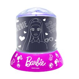 - Elle tourne doucement à 360 degrés en projetant d'adorables icônes de Barbie sur les murs et un joli jeu de lumières kaléidoscopiques au plafond.