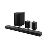 Profitez d'une immersion complète grâce à l'audio 5.1.1 canaux, délivrant une puissance de 500 W combiné à l'haut-parleur central vertical sur la barre de son, le caisson de basse ainsi que les deux satellites arrières.