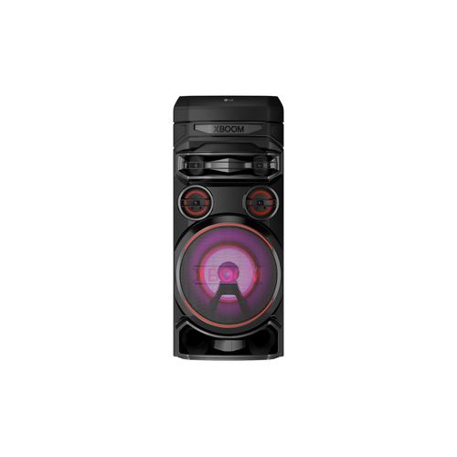 Lg RNC5 Mini-chaîne High Power XBOOM LG RNC5 puissante et lumineuse. L'amplificateur de graves surpuissant (Double Super Bass Boost), le haut-parleur de basses lumineux X-Shiny et d'autres fonctionnalités apportent un rythme puissant pour une soirée mémorable. L'éclairage LED multicolore change en fonction du rythme de la musique pour vous faire profiter d'une ambiance mémorable lors de vos fêtes. Illuminez la fête. Vous pouvez connecter jusqu'à trois smartphones en même temps et les tenir en l'air ou en placer un dans le socle pour voir les flash s'illuminer au rythme de la musique. Faites danser vos invités. Utilisez des effets sonores DJ depuis l'application XBOOM sur Android ou iOS, ou prenez le contrôle du DJ Pad sur l'enceinte. Branchez votre guitare et partez en live ! Utilisez une clé USB pour écouter vos sélections musicales ou même écoutez votre station radio favorite (FM / DAB+).