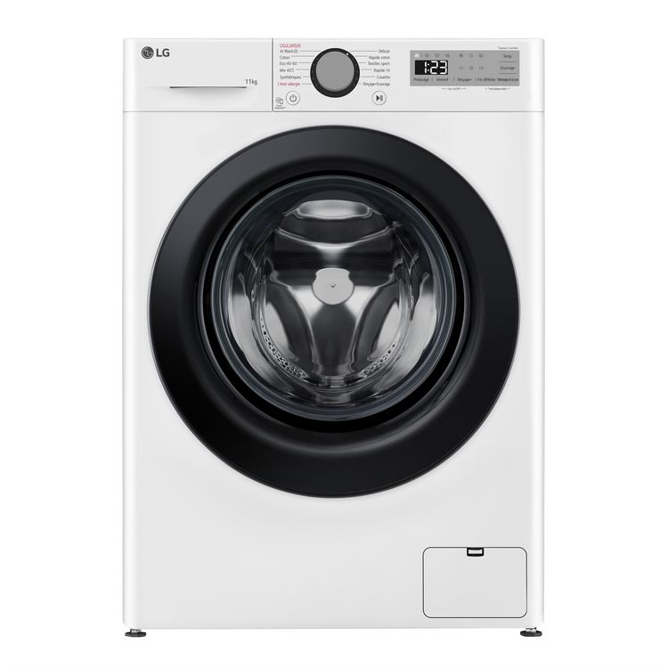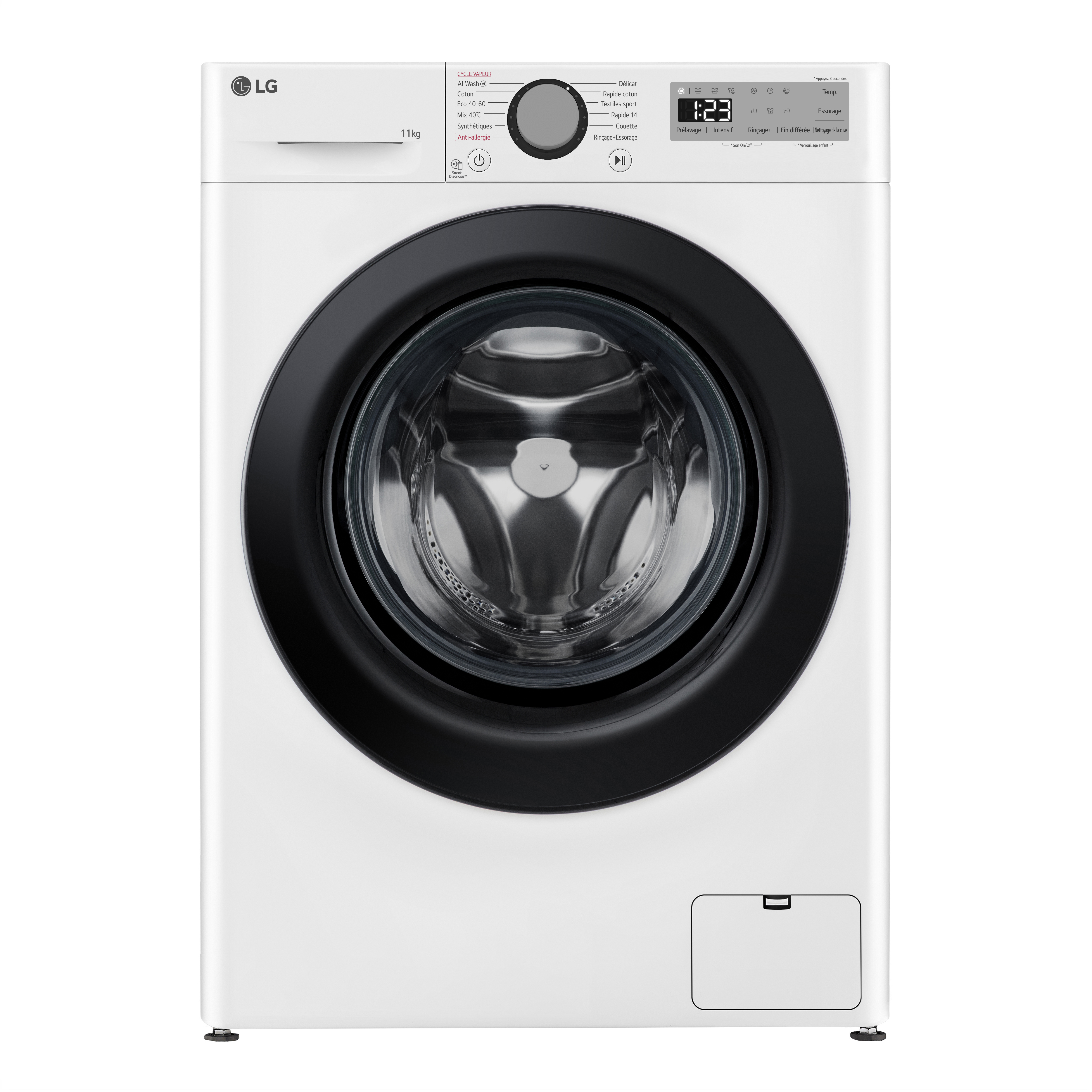 Le lave-linge F14R15WHS de la marque LG est doté d'une capacité de 11kg. Il est possible de choisir son essorage entre : 400, 800, 1000, 1200 et 1400 tours. Le thermostat est également réglable : Froid, 20°C, 30°C, 40°C, 60°C, et 95°C. De nombreux programmes sont disponibles : AI Wash, Coton, Eco 40-60, Mix 40°C, Synthétiques, Anti-allergie (vapeur), Délicat, Rapide coton, Textiles sport, Rapide 14, Couette, Rinçage+Essorage. Il est possible de programmer une fin différée de 3h à 19h.