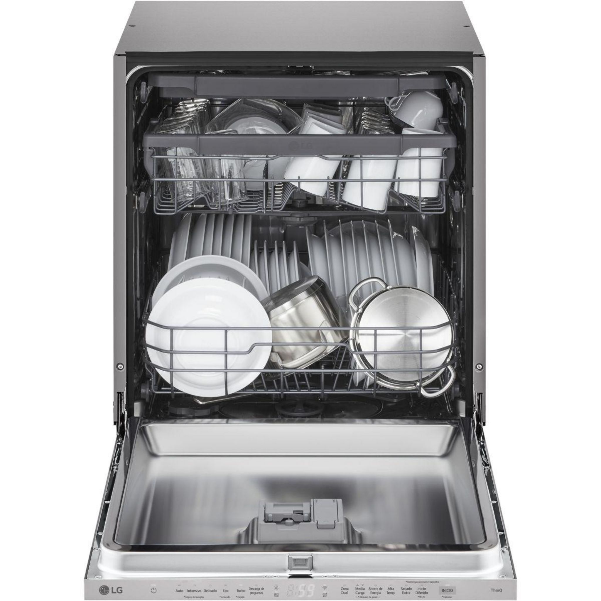 | Avantage du panier supérieur réglable en hauteur | Permet de laver des plats de grandes tailles ou de grands verres à pieds. | |