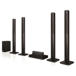 j’ai démonter les enceintes est à l’intérieur il y a des lgz40. dans les hauts parleurs devant et derrière 1 haut parleur sur 2 est fictif. les lgz40 développe 40 watt nominal se qui nous donne 240 watt rms sur la totalité, se qui est très correct. mais ont est loin des 1000w, sûrement la puissance maximal en crête admissible sur l’ensemble. les enceinte sont en plastique rigide et font très gadget. aucune isolation sonore à l’intérieur, un pad coton derrière la baffe, une boîte en plastique super fine et c’est tout. manque cruellement de basse et le caisson s'étouffe à moitié de puissance. bref home cinema de qualité moyenne.