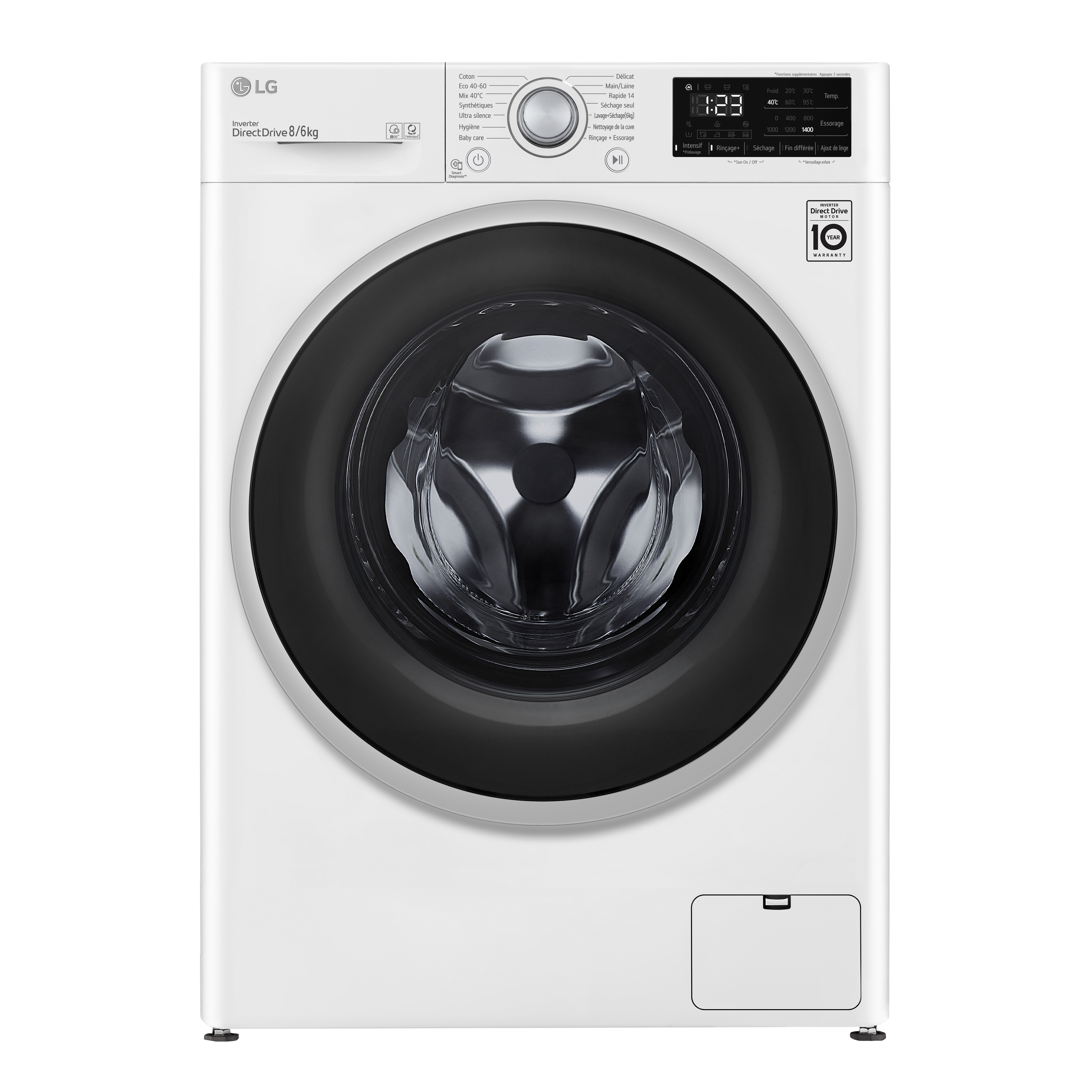 linge séchant hublot F864V37WR, 8 kg lavage, 6 kg séchage, 1400 T/min, E