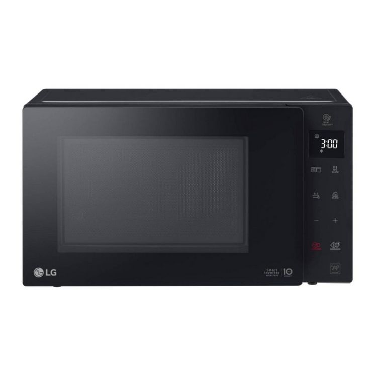 Lg MH6535GIB Micro-ondes MH6535GIB de Lg avec un design élégant, rétro éclairage blanc, équilibre entre finitions mates et glossy. Le temps de cuisson s'adapte automatiquement en fonction du poids des aliments en fonction des programmes automatiques : Décongélation, faire fondre, ramollir, Sélection du chef. Le revêtement de la Cavité de la gamme NeoChef est imperméable et antibactérien, empêchant les graisses de pénétrer et de s'incruster : la cavité se nettoie 2 fois plus facilement qu'une cavité peinte altique (Testé par Intertek).